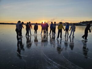 Síðustu kennsluvikur 2025 og þær fyrstu 2026 vorum við svo lánsöm að Laugarvatn var frosið. Nemendur í útivistarvali voru ekki lengi að nýta tækifærið og skelltu sér á skauta. Sumir boruðu líka gat í ísinn til að kanna þykktina. Dagarnir verða ekki mikið betri en...