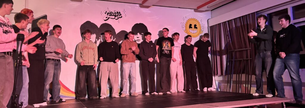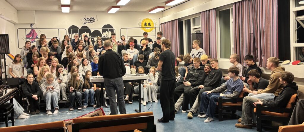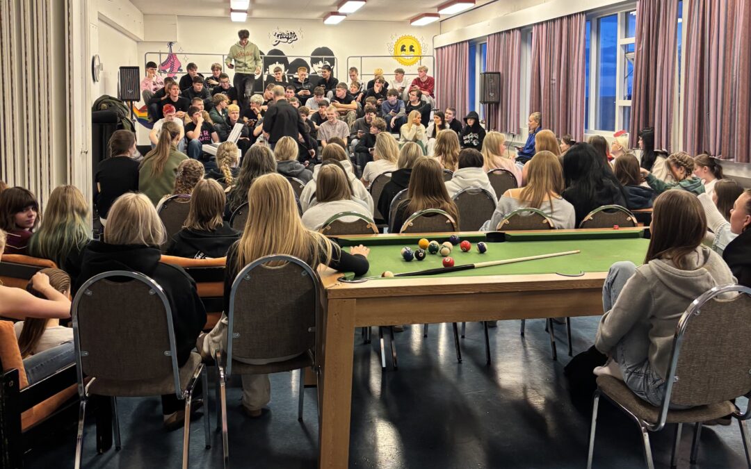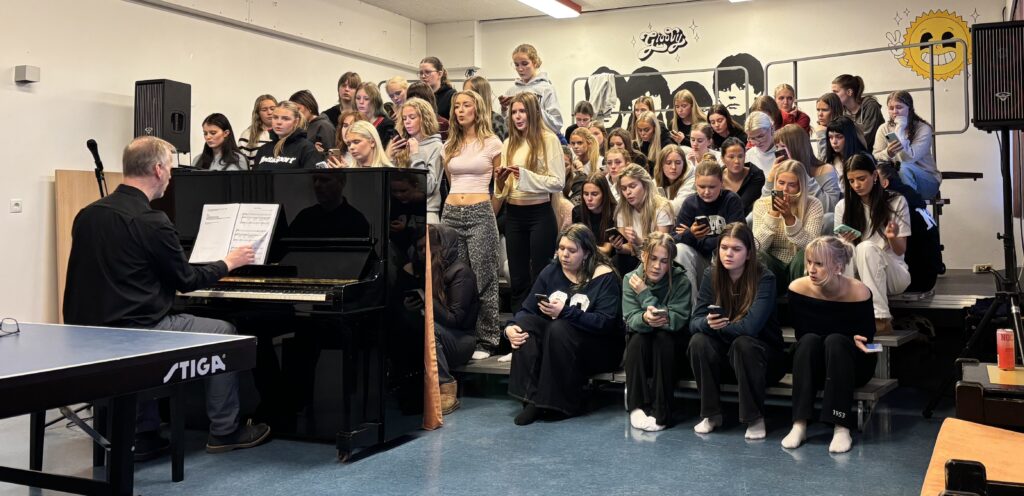 Kóræfingar áttu upphaflega að hefjast strax eftir skóla á föstudegi. Vegna landsleiks Íslands var þó skipulaginu lítillega breytt og áhugasamir fylgdust fyrst með boltanum. Að því loknu hófust æfingar í N-stofu skólans, þar sem viðburðir eru haldnir og rými er nægilegt fyrir allan kórinn.